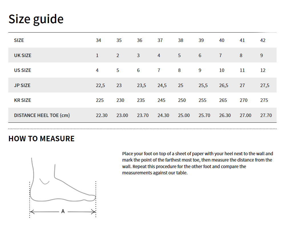 DISTANCE HEEL TOE (cm) 21.9 22.5 23.2 23.8 24.5 25.2 25.8 26.5 27.1